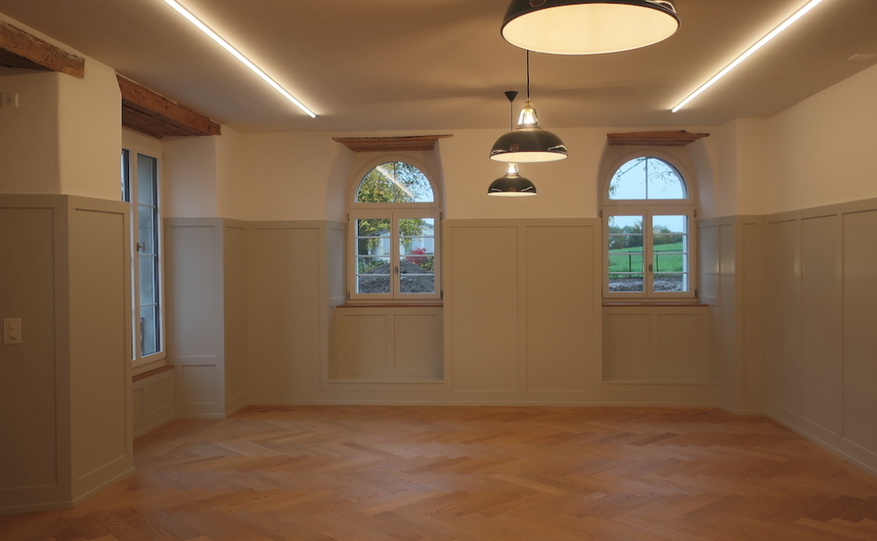 スイス漆喰のHAGA社を訪れ、会社の歴史をお聞きしたり300年以上前の建築のリノベーションを見学したりと、スイスの歴史に触れる内容でした。