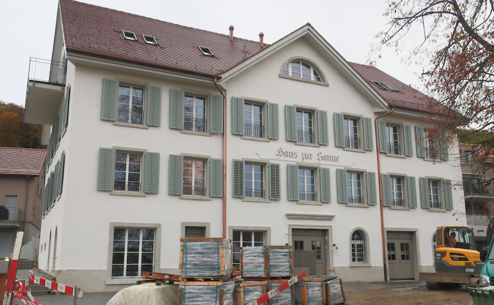ブレムガルデン村周辺のスイス漆喰、土壁利用住宅の見学です。