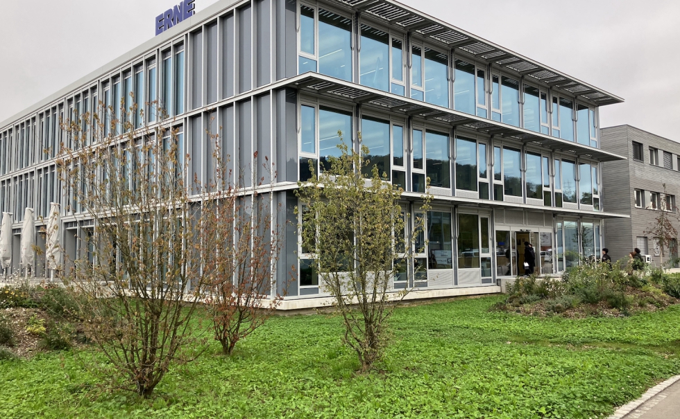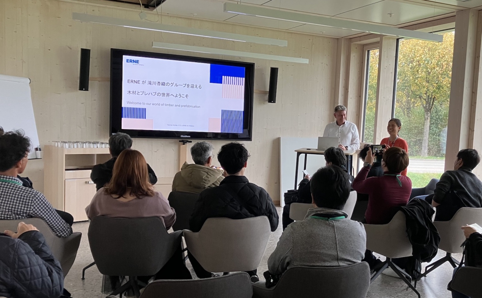 スイスにおける木造建築、特に木造高層建築分野において最大手のひとつであるエルネ社。現在、スイスでも注目を集めている木造ハイブリッド構造を用いた高さ75 メ ートルの集合住宅「H1」(3日目の外観見学事例)の工事を手掛ける、最先端技術を持つ建設会社です。