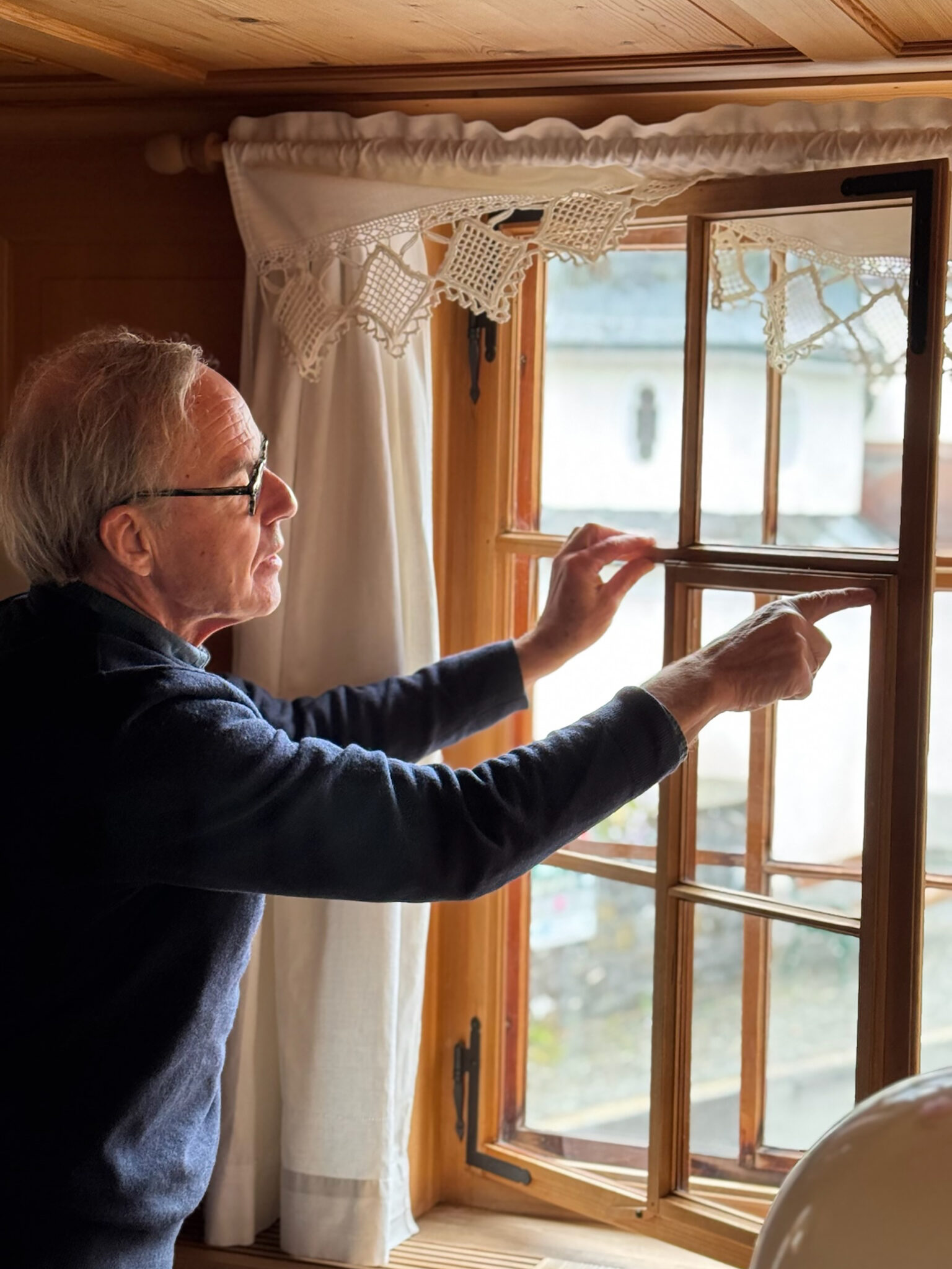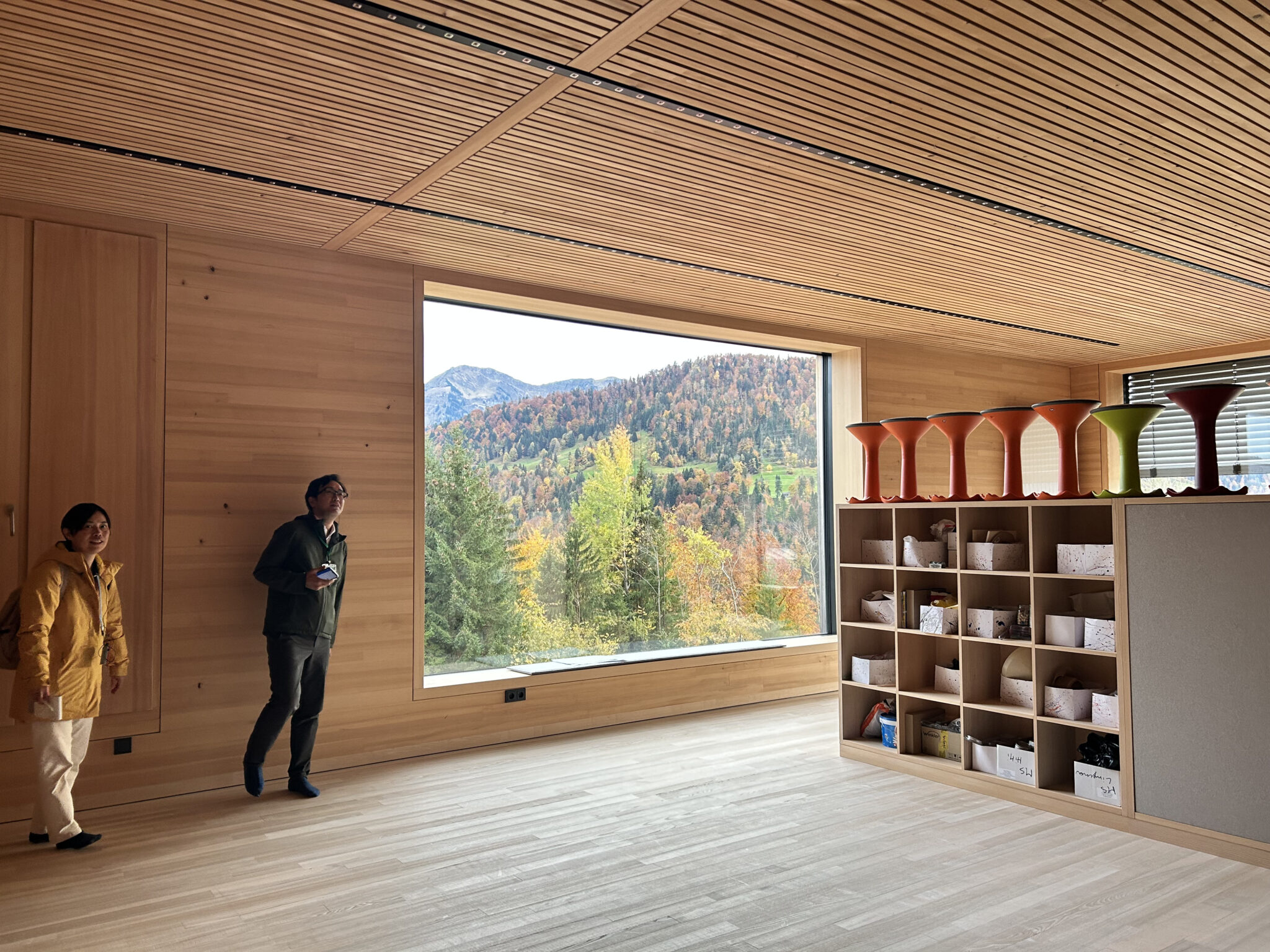 ここで、オーストリアを中心に様々な木造建築を手掛ける世界的な建築家であるヘルマン・カウフマン氏と合流しました。カウフマン氏にご自身の設計事例と村を案内していただく中で、この地域は産業・観光・工業がうまく成り立っていて、観光地にありがちな宿泊施設優先の作り方をせず、村であることを大切にしている(そうでない観光地が多い)という話を伺いました。過去にはバロック様式の教会建築などを手掛ける職人集団が山奥で修行を積む「手仕事」の地域として栄えましたが、60年代頃に廃れてしまった歴史があります。後にカウフマン氏などの建築家がその地域の歴史と魅力を掘り起こし、今改めて品質の高い職人たちが集まる「手仕事」の地域として脚光を浴びています。