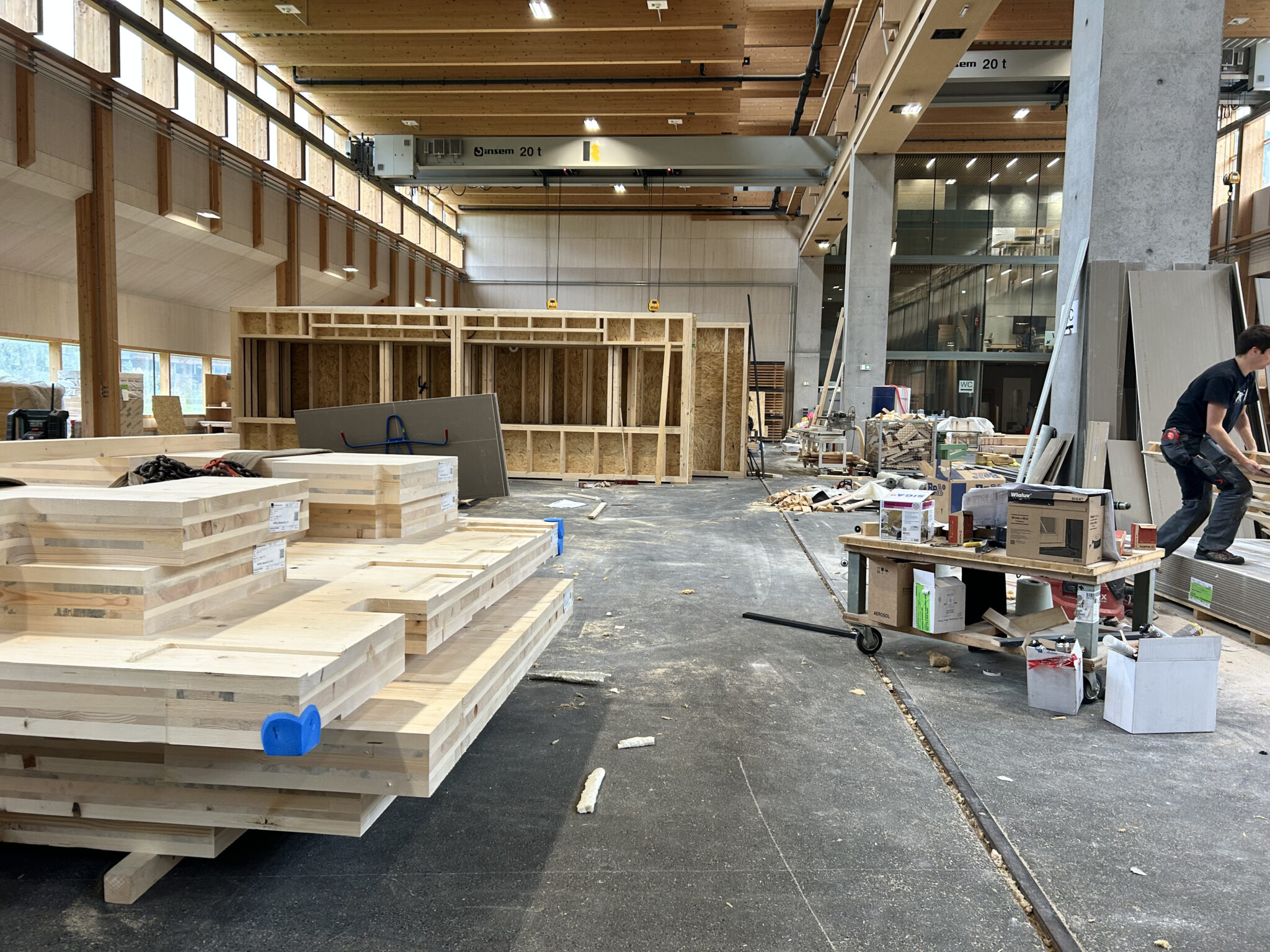そこからさらにカウフマン氏の祖父の代から続く工務店へ。工務店と言っても日本で想像するような規模では無く、壁パネル製作や木造ユニット製作の大きな工場も併せ持っています。