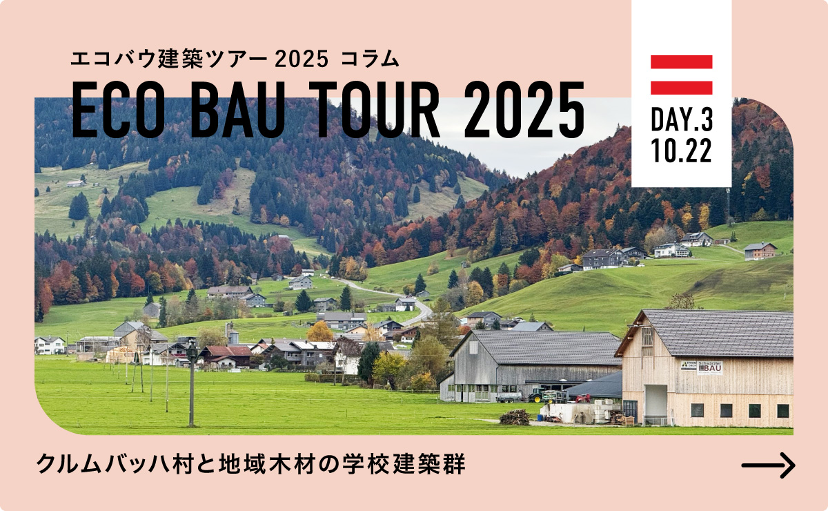 今年で28回目となるエコバウ建築ツアー。ドイツ・オーストリア・スイスを訪れ、木材の循環利用と建築の最前線を視察しました。今年のテーマは「木の循環と建築」です。3日目のコラムをお送りいたします。