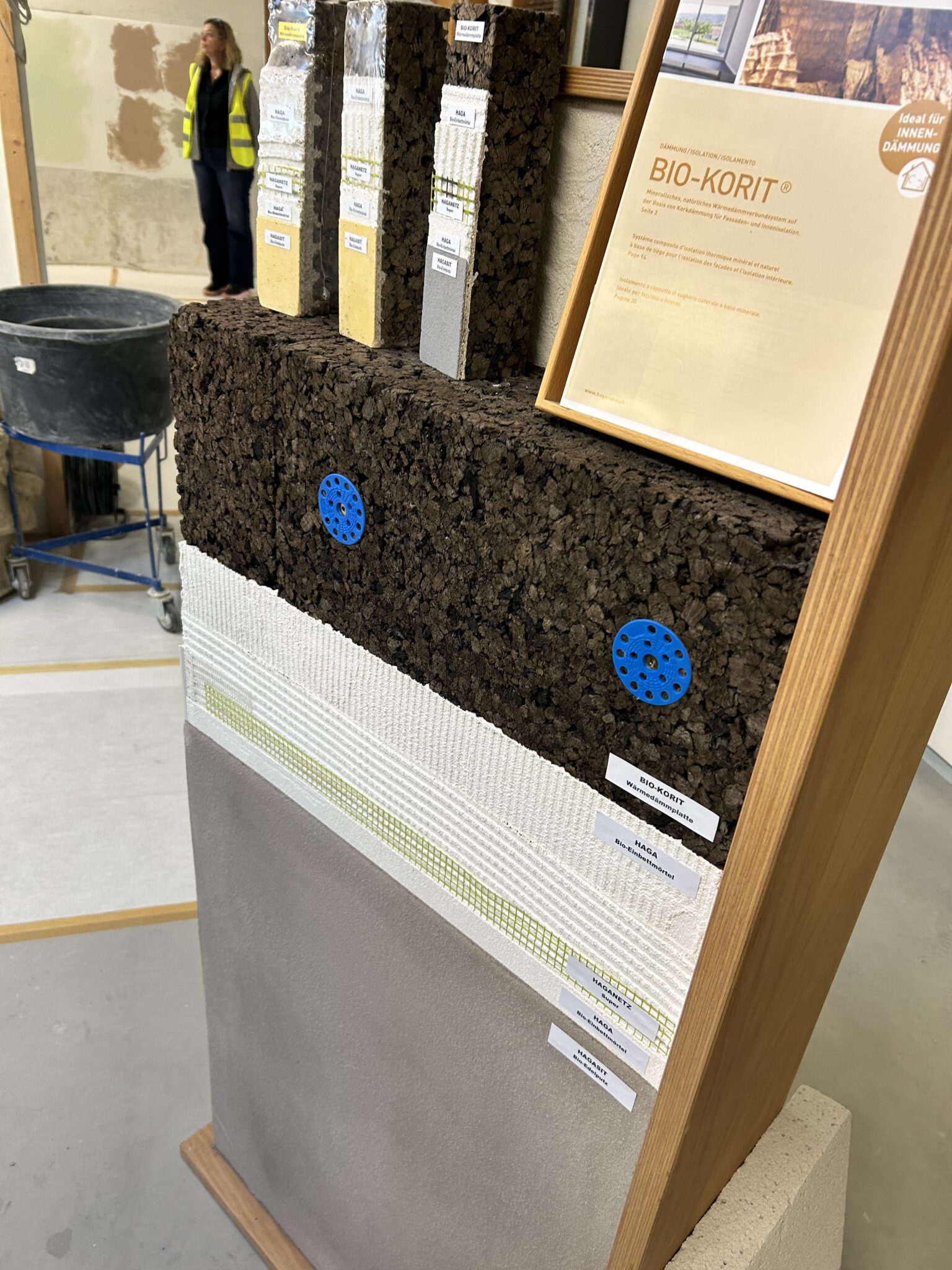 自然建材メーカーとしてスイス漆喰や土壁などの建材を手掛ける「HAGA社」へ。創業者はスイスのバウビオロギー協会設立者の一人ということもあり、粘土や石灰などを主原料としたオーガニックな建材の製造・販売を行っています。商品説明時の「石膏ボードが主流だが、近年レームボード(粘土製のボード)の需要が伸びている」というお話が印象的で、欧州での環境配慮された製品への関心の高さを感じます。