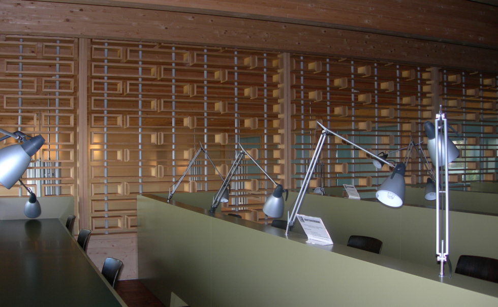 2004年に完成した床面積14.743㎡、3階建ての木造建築の高校。伝統的なスイスの住宅は木造建築だったが、近年コンクリート建築が増えた。二酸化炭素増加と温暖化阻止のため、豊富に産出するスイス木材をもう一度見直し、更にモダンな現代の多層階建築でも十分耐久性と強度を持つことを証明したスイスでもっとも大きな木造建築。強大な木造構造柱は5000本の唐松、もみ等を使い、中空の厚み1mの柱は最長32mにもなる。木が持つ本物の素材感とモダンなインテリアデザインが調和し、ハイセンスで上質な空間を作っている。木が作る外装の美しい表情と機能、そしてモダンな図書館のデザインが特に素晴らしい。