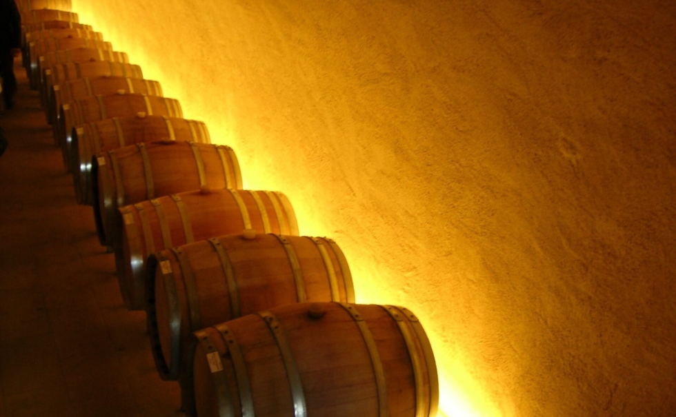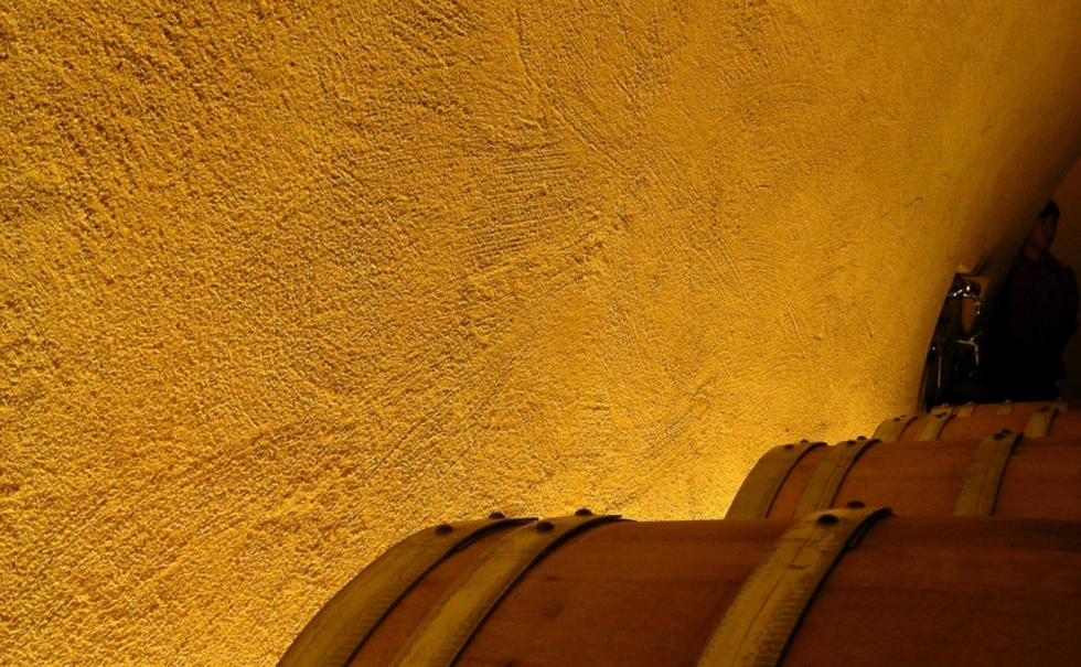 王家のワインセラーと赤いファサードの家