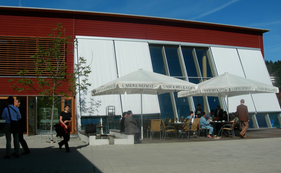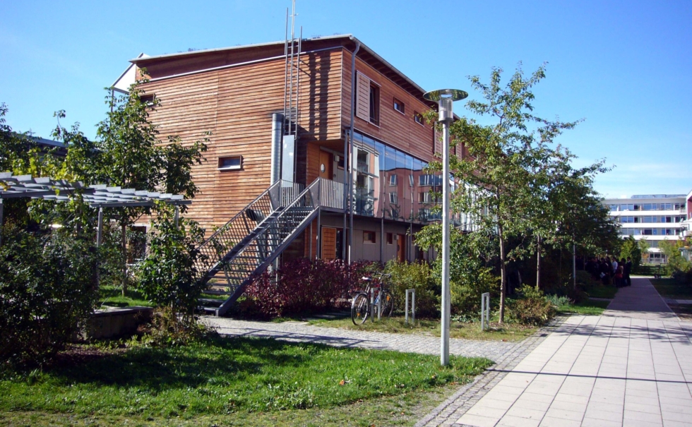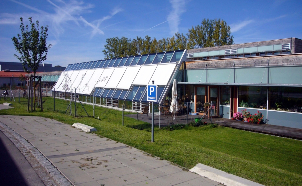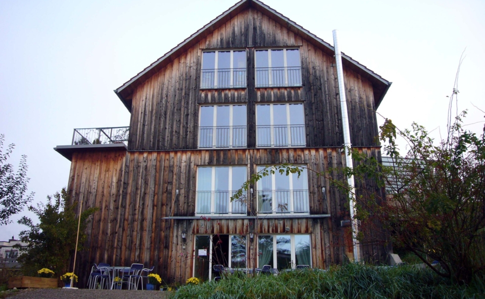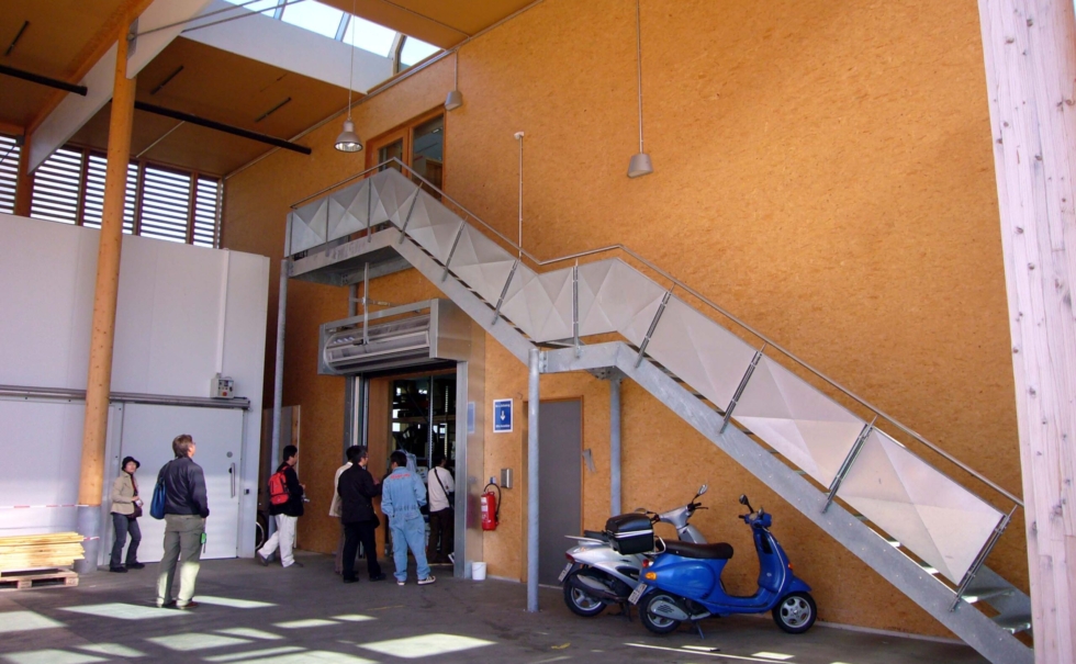ミュンヘンからスイス国境近く、標高800mの「霧の出ない高原の保養地」として有名なリンデンベルグにある障害者作業施設「レーベンスヒルフェ」。ミュンヘン工科大学とフラウンホーファー研究所のユニバーサルデザインのノウハウと最先端の省エネ技術「ソーラーバウプログラム」を取り入れて作られたエコロジー建築だ。地下水のヒートポンプとペレットストーブで温度管理をし、冬は外気温-20度にもなるこの地で常に18度に保ちながら、一般的な施設の1/10程度のエネルギー使用量に抑えているパッシブハウスである。ソーラー、地熱、自然換気など最先端の自然のエネルギーと建物自体に使われる大量の木材、自然素材と天然の色彩などが評価され2006年ドイツエコロジー賞を獲得している。