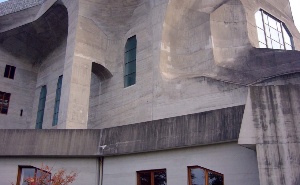 今回のエコバウツアー訪問の最大のハイライトとしてシュタイナーの本拠地ゲーテナムがある。ゲーテに影響を受けたシュタイナーは人の成長には住む環境が非常に重要であることを提唱し、建築家としても独創的で今でも影響力のある建築物を残している。「人智学」で人間中心のシュタイナー建築は、100年以上前の建築家でありながら、既に現在のエコロジー住宅に通じる考え方で設計されている。その基本は「自然界に直線は存在しない」「自然の素材・色が住む人を快適にし、人間として成長させる」などで、曲線、自然素材、天然の顔料だけを使って作られる空間は、今まで見たことの無いやわらかい空間を作っている。このシュタイナーに影響を受けた建築家が、ドイツ・スイスのエコロジー建築の中心になっているが、そんな考え方を言葉にしたのが「エコバウ」で、エコロジー+バウビオロギー(建築生物学)の造語である。生物のように「呼吸する住宅」である。