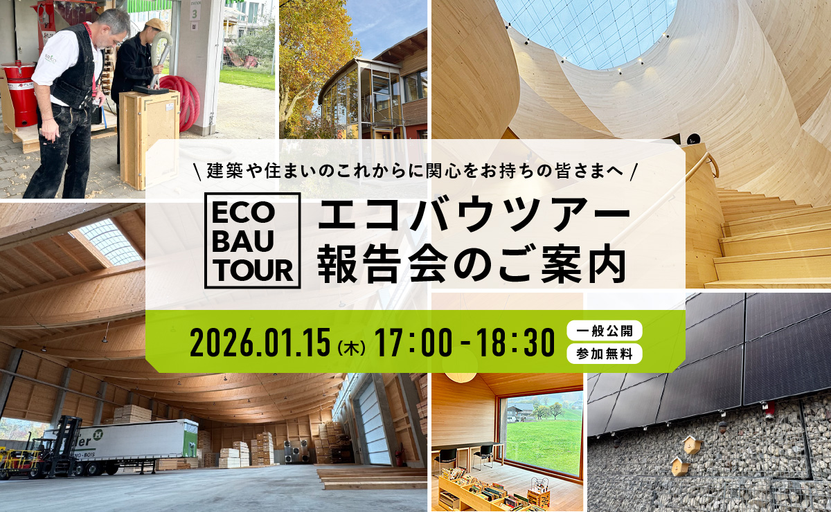 建築や住まいのこれからに関心をお持ちの皆さまへ 2026年1月15日(木)17:00より、エコバウ建築ツアーオンライン報告会を開催いたします。本イベントは一般公開・無料でご参加いただけます。