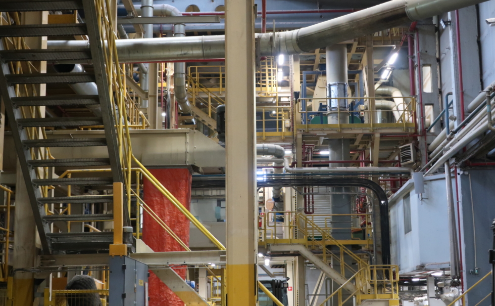車で登れるほどのウッドチップの山、外にこれだけの量を置いていたら雨で濡れたり虫がたくさん湧いたりするんじゃ?と不安になりますが、先に述べた「1日350コンテナの製品が生産される」ということで心配は無用ですね。これだけの量もすぐに製品加工で消費されていきます。