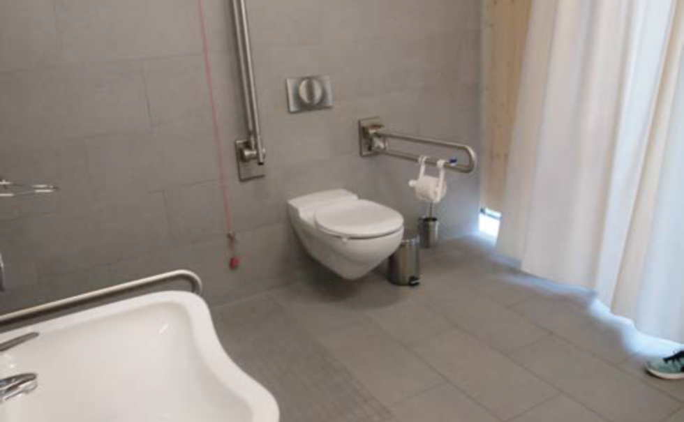 身体障害者が住む一室を視察。内装はすべて障害者対応で共同部分の入り口ドアなども自動化されている。95㎡で東京都であれば、5,000万円~億を超える作りの住宅が補助金を活用し実費2,500万円程度で建てることができる。