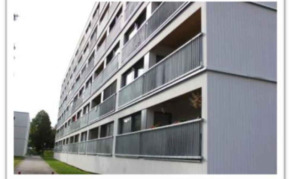 断熱・遮音・遮熱効果のある繊維・木質系プレートを外壁に取り付け暖房費が€200~300がゼロ。家賃は月€4.5/㎡から€5.6/㎡へ。