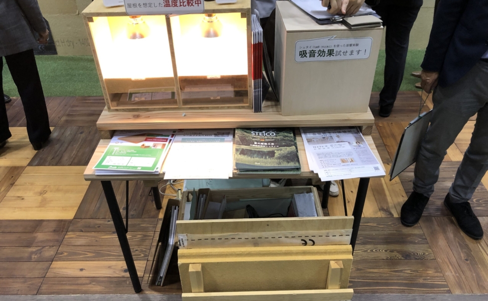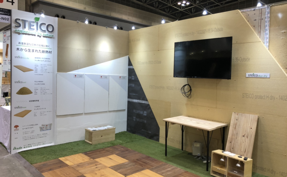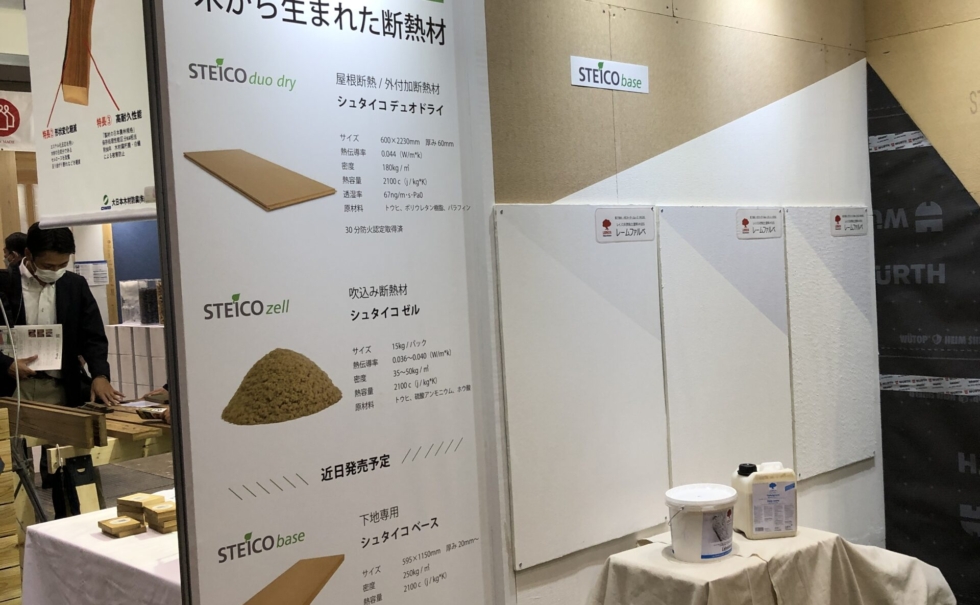今年のブースでは、「木繊維断熱材シュタイコ」のご提案と、新たに取り扱いを開始する「レームファルベ」をご紹介しました。
