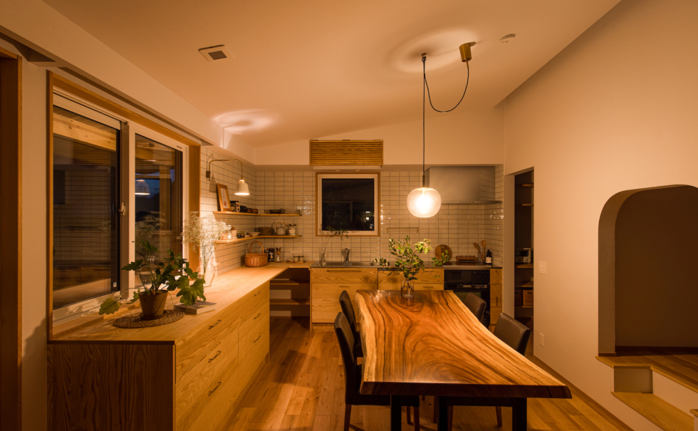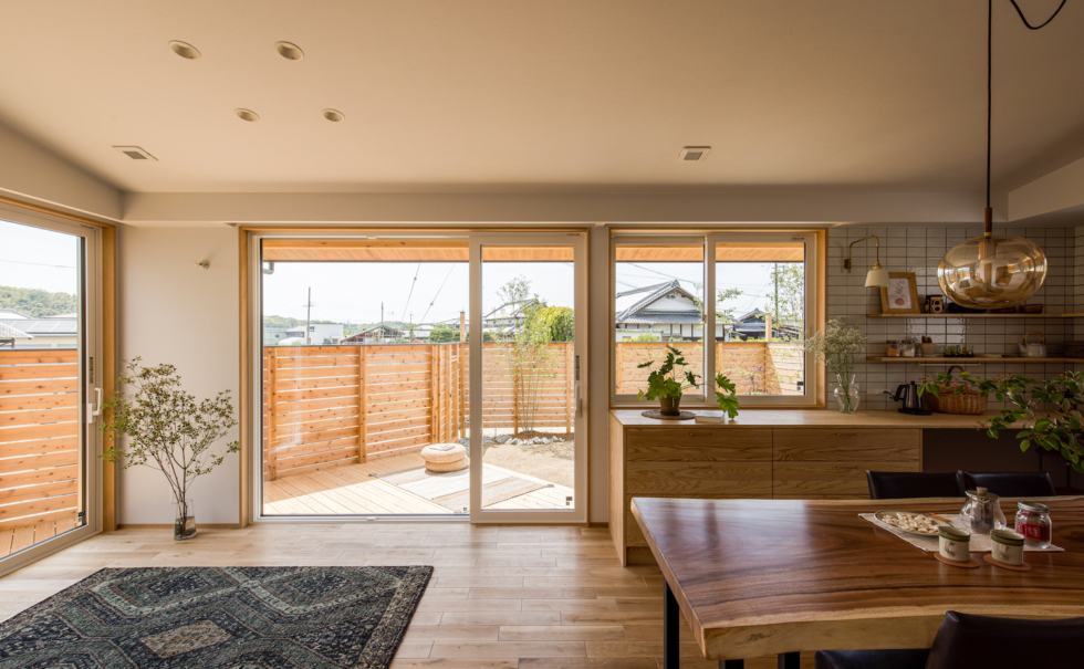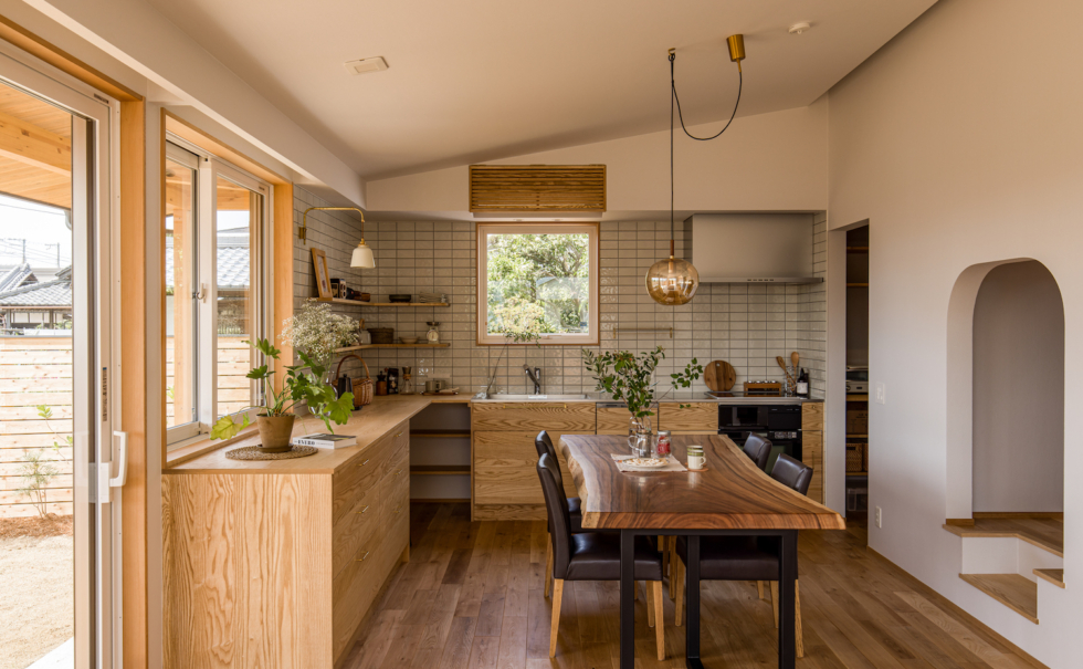 自然の豊かな街並みを眺めたり、庭木がつくる木漏れ日を愉しんだり、育てた野菜を使って料理を作ったり、四季を通して少しずつ変わる風景を感じながら暮らす。そんな贅沢を味わう平屋の家。