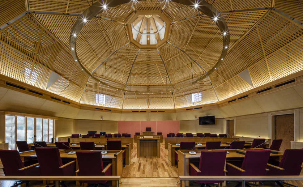 「第25回木材利用コンクール」の“木材活用賞”に入賞した「京丹波町役場 新庁舎」。