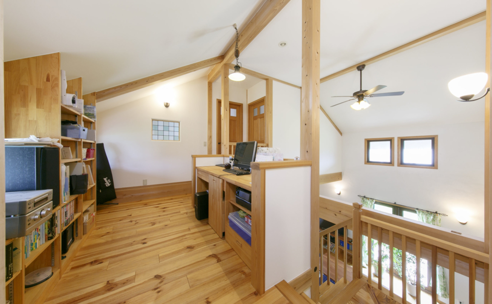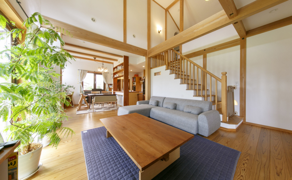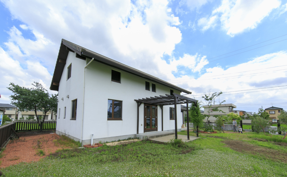 外断熱に木繊維断熱材、内断熱にセルロースファイバー吹込み、ヨーロッパ製トリプルサッシで気密・断熱性を高めています。LIFEBREATH社製第一種換気システム、ダクト型全館空調を取り入れた省エネ住宅です。