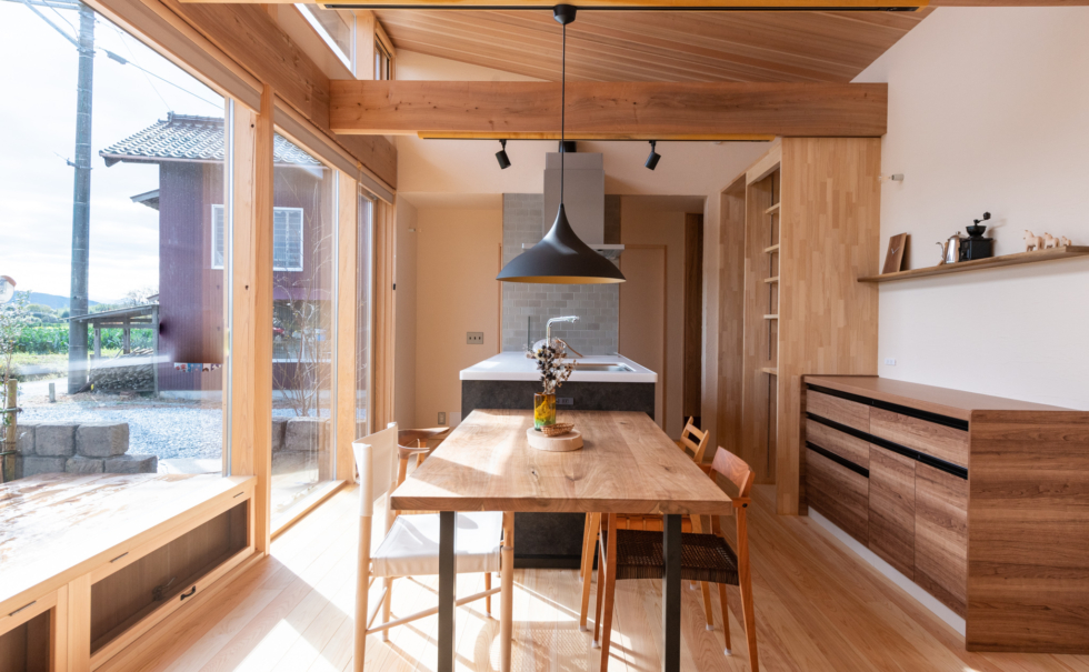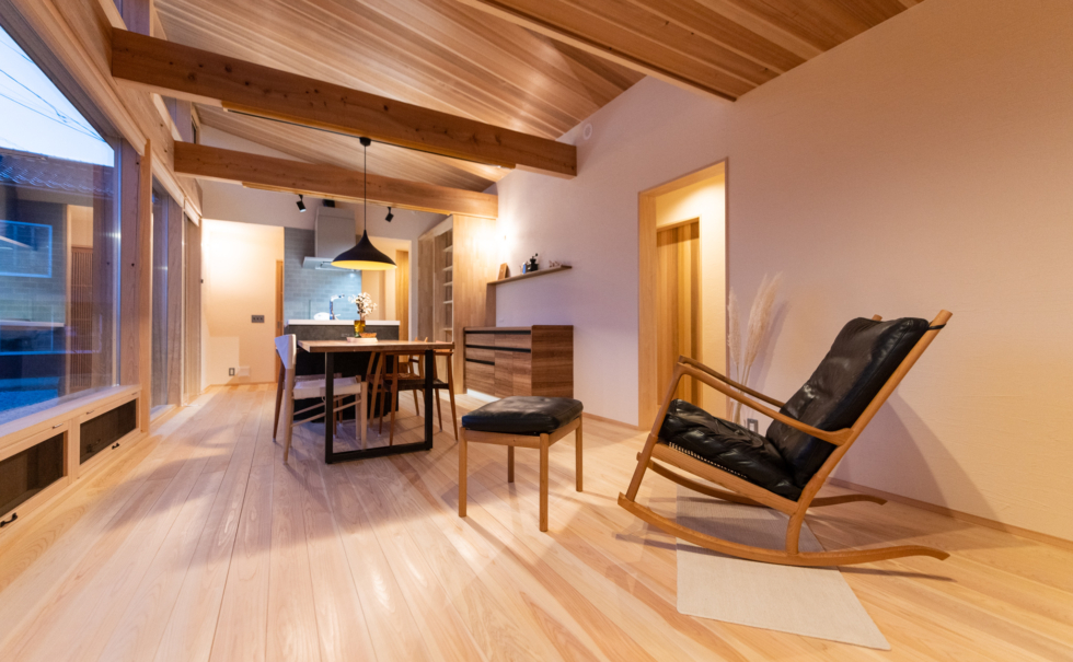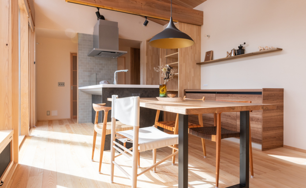 (ikeco Vol.40特集) 南面にとった造作の窓が設計のポイント。窓から差し込む陽が当たる内壁部分にもシュタイコゼルを吹き込み、夏の暑さ対策、冬には蓄熱として効果を発揮する。 仕様 【断熱材】 シュタイコ木繊維断熱材 シュタイコ ゼル 写真提供:株式会社創伸