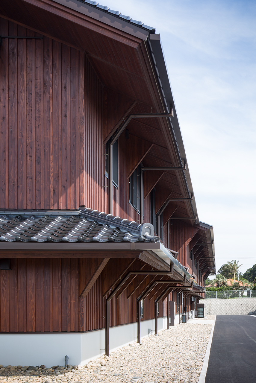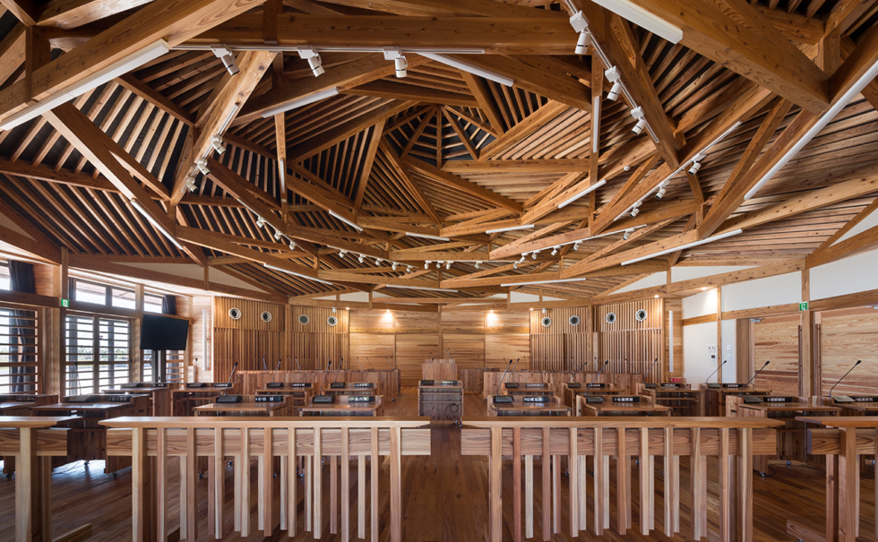 地杉を活かし、台風の多い屋久島の風土に適した設計・建築が評価されました。建設前には、乾燥法の試験や強度測定なども行われ、その中でリボス自然健康塗料が選ばれました。地杉の展示場としても活用され、地域に根ざし、連携した建物という点も評価に反映されています。
